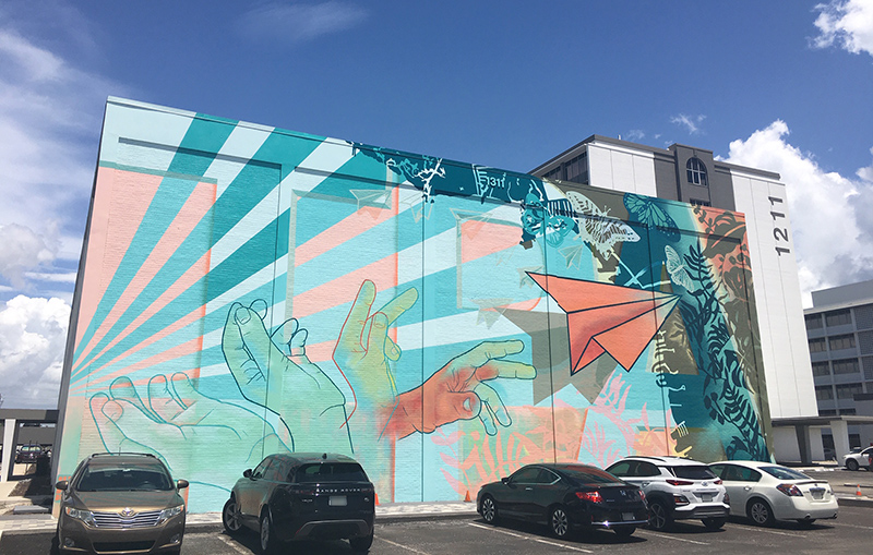 This branch is located near the corner of Laurel St. and N. Westshore Blvd. and has a large mural of a person throwing a paper airplane on the front of the building.